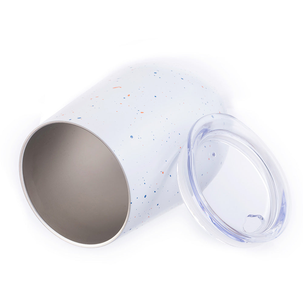 - COMPATIBLE & USER-FRIENDLY: Our vacuum insulated wine tumbler is designed with a wide mouth simple modern silhouette and sweat-free. It comes with a splash proof lid which keeps your beverage safe than breakable glasses in the party, beach, in house and backyard.