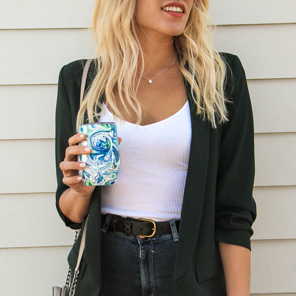 • ENVIRONMENTALLY - FRIENDLY: Take our wine tumbler along with you and keep yourself enjoying your favorite beverage. Now enjoy every sip of your wine, cocktail, water or coffee. Our product is BPA free and complies with FDA standard. Say NO to one-time use cups with this insulated wine tumbler. It's less harmful to the environment and is a better option than those single-serving containers.