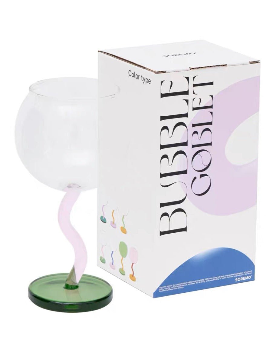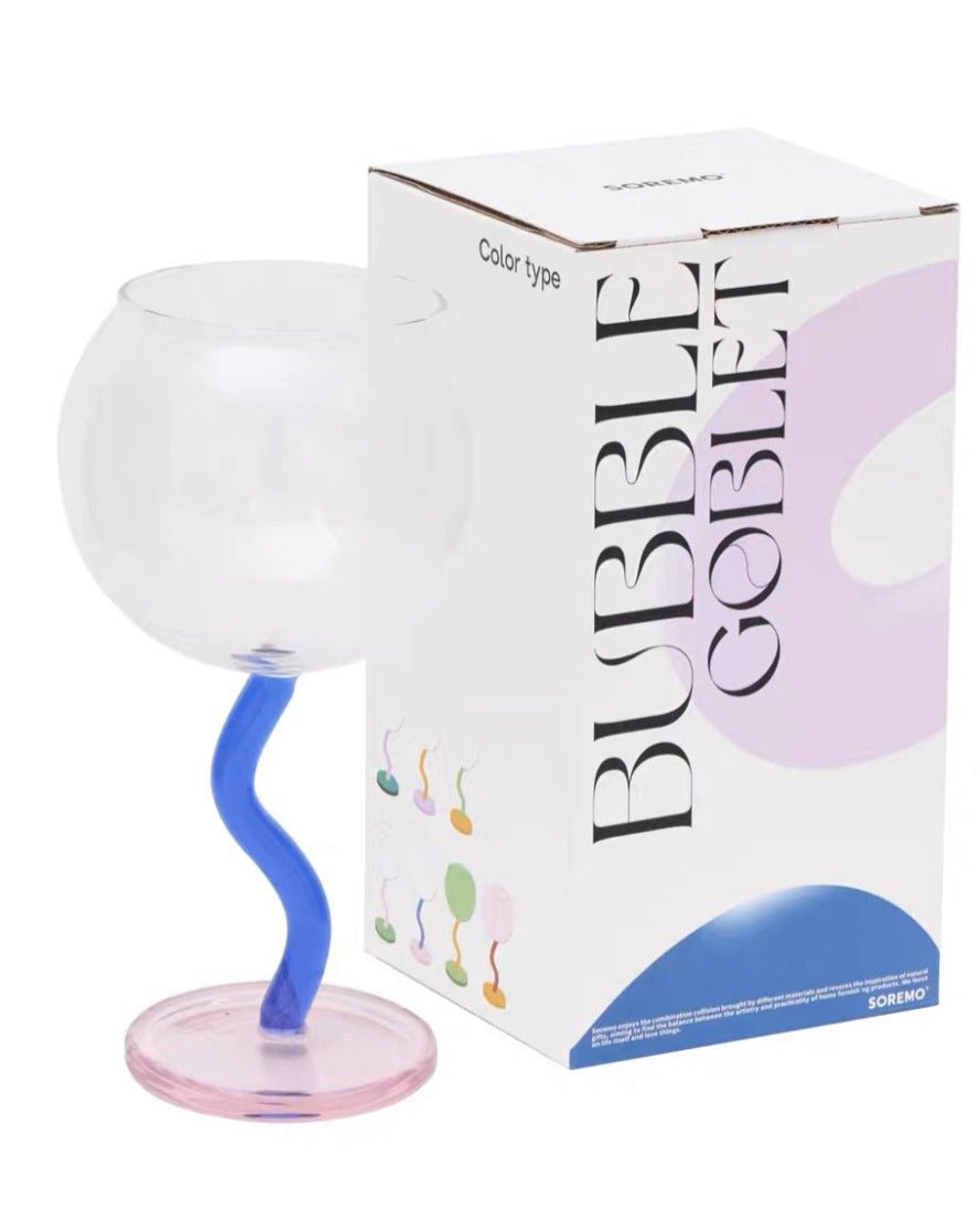 Handblown Bubble Wine Glass - Retro Whimsical Eclectic Wavy Stemmed